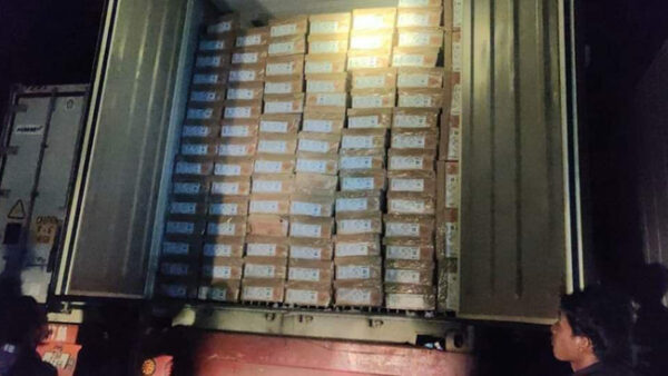 សមត្ថកិច្ច ឃាត់រថយន្ដ ដឹកទំនិញ៤កុងតឺន័រ ជាប្រភេទជើងមាន់ នៅក្រុងស្វាយរៀង