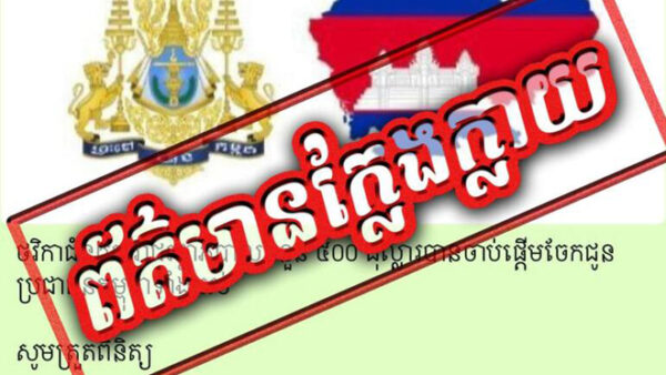 អ្នកនាំពាក្យរាជរដ្ឋាភិបាល បញ្ជាក់ថា ដំណឹង ” រាជរដ្ឋាភិបាលចាប់ផ្តើមចែកជំនួយ ៥០០ ដុល្លារអាមេរិក ជូនដល់ប្រជាពលរដ្ឋ” ជាដំណឹងក្លែងក្លាយ សូមអ្នកលេងបណ្ដាញសង្គមទាំងអស់ ប្រុងប្រយ័ត្ន