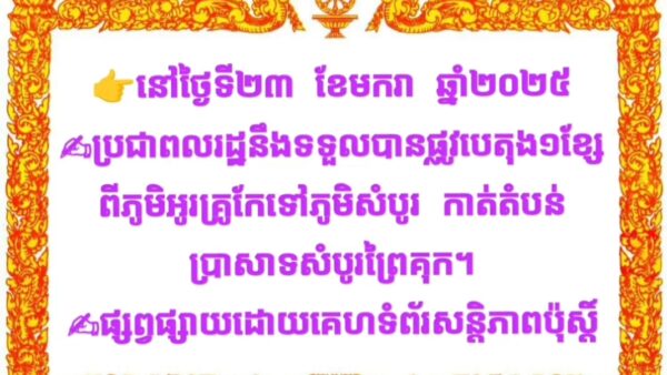 ✍ប្រជាពលរដ្ឋទទួលបានផ្លូវមួយខ្សែ នៅភូមិអូរគ្រូកែឆ្ពោះទៅភូមិសំបូរ ឃុំសំបូរ ស្រុកប្រាសាទសំបូរ ខេត្តកំពង់ធំ។