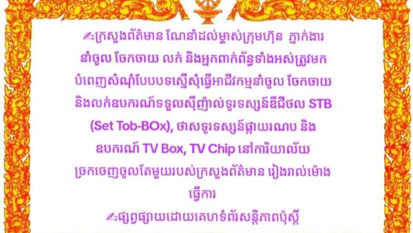 ✍ក្រសួងព័ត៌មានណែនាំដល់ម្ចាស់ក្រុមហ៊ុន ភ្នាល់ងារនំាចូល ចែកចាយ និងលក់????