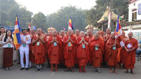 ថ្នាក់ដឹកនាំសង្ឃកម្ពុជា ចូលរួមពិធីដង្ហែ ក្បួនធម្មយាត្រា បើកកម្មវិធីសូធ្យ ព្រះត្រៃបិដកអន្តរជាតិ លើកទី១៩ នៅពុទ្ធគយា ប្រទេសឥណ្ឌា