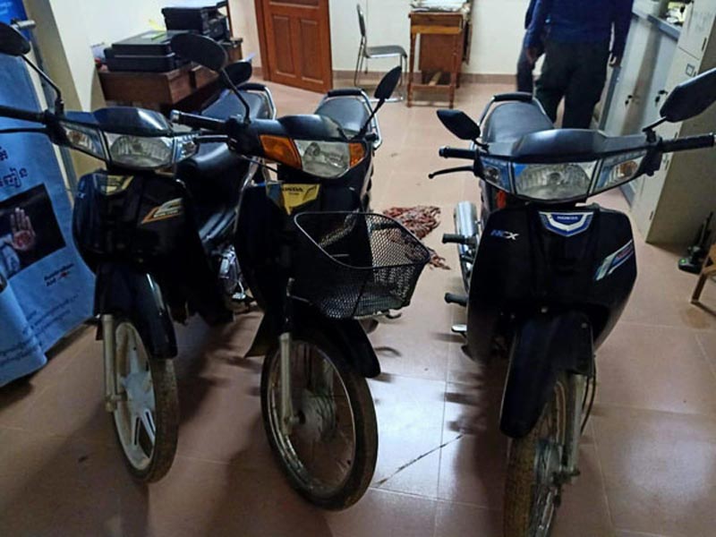 ជនសង្ស័យ០២នាក់ និងវត្ថុតាងចាប់យកមានម៉ូតូ០៣គ្រឿង ទី១/ ម៉ូតូម៉ាកហុងដាសង់សេ១២៥ ផលិតឆ្នាំ២០១៦ ពាក់ផ្លាកលេខភ្នំពេញ1GB-9447 ពណ៌ខ្មៅ០១គ្រឿង ។ ទី២/ ម៉ូតូម៉ាកហុងដាសង់សេ១២៥ ផលិតឆ្នាំ២០១៥ ពាក់ផ្លាកលេខភ្នំពេញ1FL-4959 ចំនួន០១គ្រឿង និងទី៣/ ម៉ូតូម៉ាកហុងដាសង់សេ១២៥ ផលិតឆ្នាំ២០១២ ពាក់ផ្លាកលេខភ្នំពេញ1BH-6557 ចំនួន០១គ្រឿង។ ២.សត្វមាន់ជល់០២ក្បាល ។ ៣.ជញ្ជីងថ្លឹងមាន់០១គ្រឿង និង កូនឆ្នាំង០២ និងចង្រ្កានហ្គាស០១ និង កំប៉ុង០២ និង ថងជរ័០១ និងកម្រាលព្រំ០១ ។