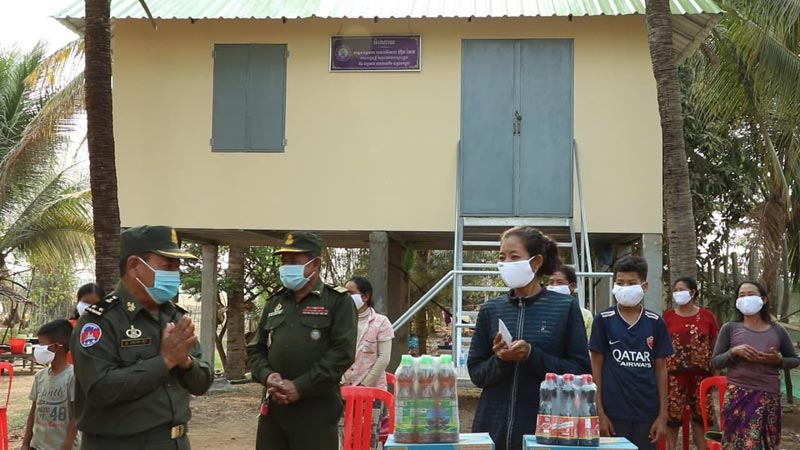 សម្ដេចអគ្គមហាសេនាបតីតេជោហ៊ុនសែន និងសម្ដេចគតិព្រឹទ្ធបណ្ឌិតប៊ុនរ៉ានីហ៊ុនសែន បានគិតគូរអំពីសុខទុក្ខ ជីវភាពរស់នៅរបស់បងប្អូនអតីតយុទ្ធជន រួមទាំងដឹងគុណអតីតយុទ្ធជន បើគ្មានអតីតយុទ្ធជនដែលបានលះបង់គ្រប់បែបយ៉ាងដើម្បីជាតិ និងបានប្រគល់ផ្ទះមួយខ្នង ជាខ្នងផ្ទះលើកទី ១៨៧ ទំហំ 4 ម 6ម ខ្ពស់ផុតពីដី សសរបេតុង ឆ្អឹងដែក រនាបក្តា ដំបូលប្រក់ស័ង្កសីកិនភ្លី និងជណ្ដើរកាច់ សាងសង់ដោយក្រុមការងារនៃគណៈកម្មាធិការសមាគមអតីតយុទ្ធជនកម្ពុជាខេត្តកំពង់ធំ និងបានឧបត្ថម្ភបន្ថែម នូវអំណោយឯកឧត្តមឧត្តមសេនីយ៍ឯក ហ៊ុន ម៉ាណែត និងលោកជំទាវ ពេជ្រជ ច័ន្ទមុន្នី មានអង្ករ៥០គ.ក មីពីរកេស ទឹកត្រីទឹកស៊ីអ៊ីវ២ យួរ និងថវិកា មួយចំនួនផងដែរ ។