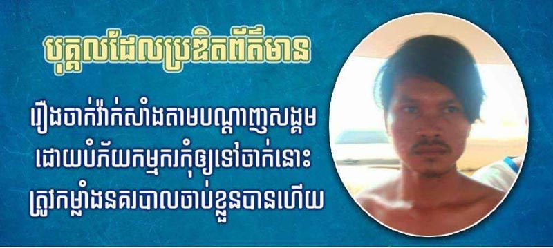 សូមជំរាបថា បុគ្គលរូបនេះបានថតវីដេអូប្រឌិតព័ត៌មានពាក់ព័ន្ធជាមួយវ៉ាក់សាំងនេះ និងប្រាប់ទៅកម្មករកុំឲ្យចាក់វ៉ាក់សាំងនេះ ព្រោះអាចនឹងមានគ្រោះថ្នាក់ដល់ អាយុជីវិតក្រោយ ចាក់រួច។ យ៉ាងណាមិញ ក្រោយទទួលបានវីដេអូប្រឌិត មានចេតនាញុះញង់នេះ កម្លាំងជំនាញបានបើកការស្រាវជ្រាវភ្លាមៗ រហូតឈានដល់ការឃាត់ខ្លួនបាន៕
