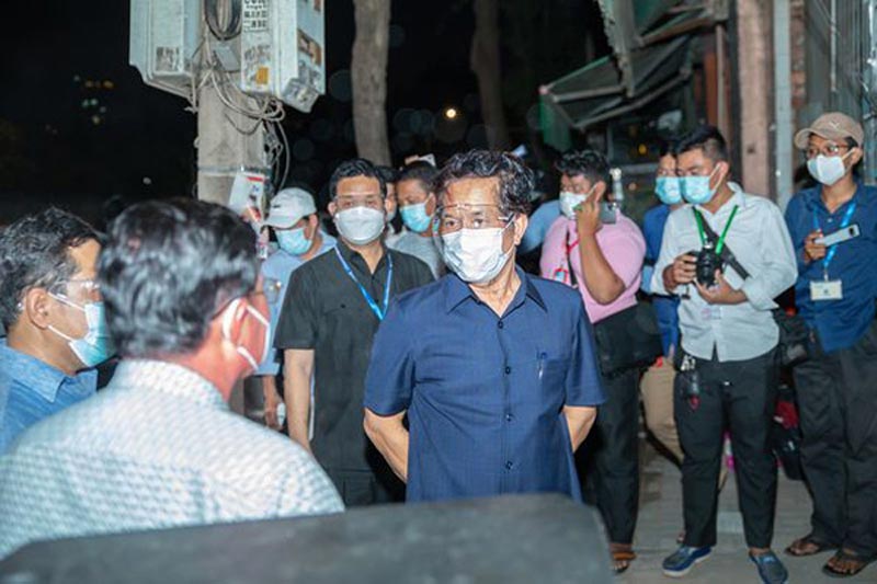 រាជធានីភ្នំពេញ ៖ នាយប់ថ្ងៃទី៥ ខែមេសា ឆ្នាំ២០២១ លោក ឃួង ស្រេង អភិបាល នៃគណៈអភិបាល រាជធានីភ្នំពេញ បានចុះសួរសុខទុក្ខបងប្អូនប្រជាពលរដ្ឋរស់នៅក្នុងភូមិ១៦ សង្កាត់ទន្លេបាសាក់ ខណ្ឌចំការមន រាជធានីភ្នំពេញ ដែលកំពុងតែធ្វើចត្តាឡីស័កនិងជួបទុក្ខលំបាកខ្វះស្បៀងអាហារចំនួន១៦០គ្រួសារ។
