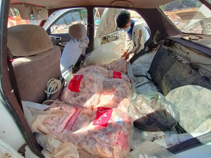 ខេត្តបាត់ដំបង ៖ សាច់មាន់ខូចគុណភាពសរុបចំនួន ៥០០គីឡូក្រាម ត្រូវបានសមត្ថកិច្ចជំនាញបង្ក្រាបនិងដកហូតបាន ខណៈដែលឈ្មួញលួចដឹកតាមរថយន្តនាំចូលពីព្រំដែនប្រទេសថៃមកកាន់ទីផ្សារក្នុងទឹកដីនៃខេត្តបាត់ដំបង ។