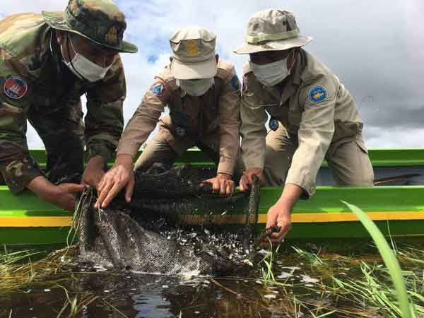 ខេត្តពោធិ៍សាត់ ៖ ថ្ងៃទី២០.២១ ខែកញ្ញា ឆ្នាំ២០២១ មន្ត្រីសង្កាត់រដ្ឋបាលជលផលកណ្ដៀង រួមសហការជាមួយនគរបាលស្រុក និងកម្លាំងយោធា បានចុះត្រួតពិនិត្យ និងបង្ក្រាបបទល្មើសនេសាទ ប្រភេទរបាំងស្បៃមុង និងរបាំងសាច់អួន ដោយបំផ្លាញចោលនូវឧបករណ៍ជាវត្ថុតាង និងចាក់លែងត្រីចំរុះចូលទឹកបឹងធម្មជាតិទន្លេសាប ផងដែរ ។ការបង្ក្រាបខាងលើធ្វើឡើង នៅបឹងទន្លេសាប ត្រង់ចំណុចកោះតាកោ ស្ថិតនៅភូមិព្រែក ឃុំរាំងទិល និងចំណុចបឹងវែង ស្ថិតនៅភូមិ.ឃុំរាំងទិល ស្រុកកណ្ដៀង ខេត្តពោធិ៍សាត់។