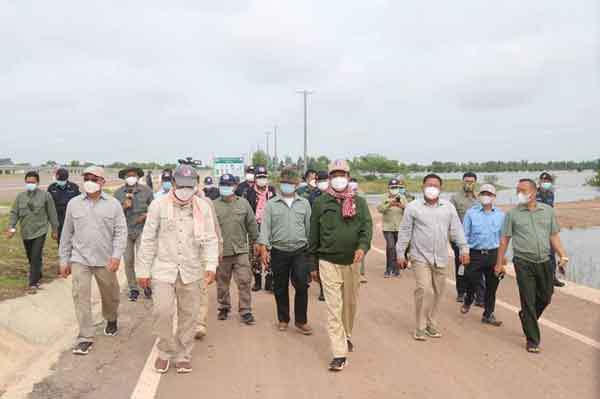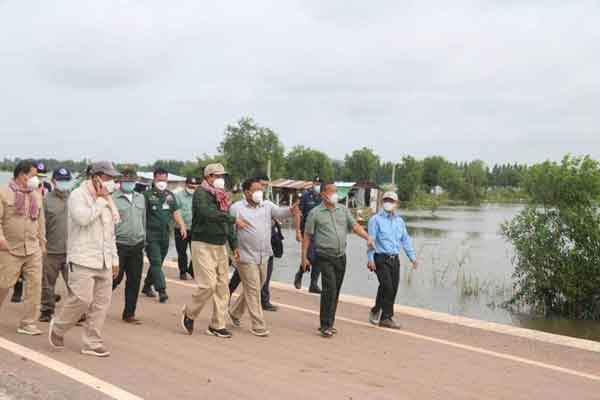 ខេត្តបន្ទាយមានជ័យ ៖ លោក គន់ គីម ទេសរដ្ឋមន្ត្រី និងជាអនុប្រធានទី១គណៈកម្មាធិការជាតិគ្រប់គ្រងគ្រោះមហន្តរាយ តំណាងសម្ដេចអគ្គមហាសេនាធិបតីតេជោ ហ៊ុន សែន នាយករដ្ឋមន្ត្រី នៃព្រះរាជាណាចក្រកម្ពជា អមដំណើរដោយលោក អ៊ុំ រាត្រី អភិបាលខេត្តបន្ទាយមានជ័យ លោកឧត្តមសេនីយ៍ត្រី បោន ប៊ិន មេបញ្ជាការកងរាជអាវុធហត្ថខេត្តបន្ទាយមានជ័យ កម្លាំងទិសទី១ យោធភូមិភាគទី៥ កម្លាំងកងពលតូចថ្មើជើងលេខ៥១ កម្លាំងប្រតិបត្តិការសឹករងបន្ទាយមានជ័យ និងកម្លាំងនគរបាលខេត្ត កាលពីម្សិលមិញ បានចុះពិនិត្យមើលប្រជាពលរដ្ឋដែលកំពុងរងគ្រោះដោយទឹកជំនន់ទឹកភ្លៀងនិងទឹកហូរមកពីស្រុកថៃជាច្រើនគ្រួសារ និងត្រៀមជញ្លៀសទៅនៅទីទួលសុវត្តិភាពដោយសារស្ថានភាពទឹកនៅក្នុងស្រុកអារញ្ញប្រាថេតប្រទេសថៃ បានហក់ឡើងលឿនធ្វើឲ្យកម្ពស់ទឹកហក់ឡើងខ្ពស់ផ្នែកខ្លះក្នុងភូមិសាស្ត្រខេត្តបន្ទាយមានជ័យ អាចនឹងទទួលរងនូវការគំរាមកំហែង ពីទឹកជំនន់ហូរធ្លាក់មកពីប្រទេសថៃតាមអូរព្រំដែនកម្ពុជា-ថៃនេះនិង អាចជន់លិចជាច្រើនស្រុក ក្រុង ។