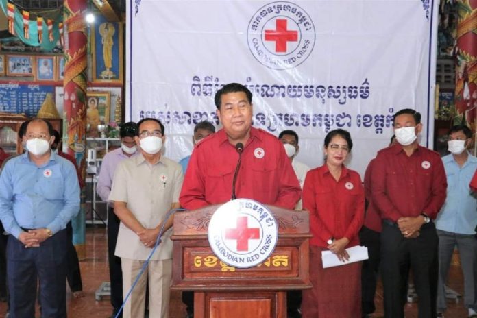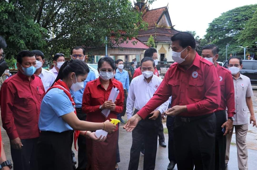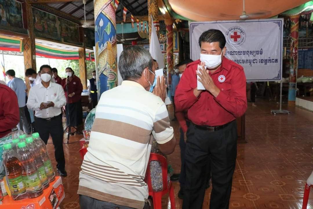 ខេត្តកំពត ៖ នៅព្រឹកថ្ងៃទី១០ ខែតុលា ឆ្នាំ២០២១ នេះ ឯកឧត្តម ជាវ តាយ អភិបាលនៃគណៈអភិបាលខេត្ត និងជាប្រធានគណៈកម្មាធិការសាខាកាកបាទក្រហមកម្ពុជា ខេត្តកំពត រួមដំណើរដោយលោក លោកស្រី អភិបាលរងខេត្ត លោក លោកស្រី សមាជិក សមាជិកាគណៈកម្មាធិការសាខា លោក លោកស្រីប្រធានមន្ទីរ អង្គភាពជុំវិញខេត្ត ក្រុមប្រតិបត្តិសាខា អនុសាខា អ្នកស្ម័គ្រចិត្ត និងយុវជនកាកបាទក្រហម ព្រមទាំងមានការចូលរួមពីអាជ្ញាធរមូលដ្ឋាន បានរៀបចំពិធីសំណេះសំណាលសួរសុខទុក្ខ និងនាំយកអំណោយមនុស្សធម៌របស់កាកបាទក្រហមកម្ពុជា ដែលមានសម្តេចកិត្តិព្រឹទ្ធបណ្ឌិត ប៊ុន រ៉ានី ហ៊ុនសែន ជាប្រធាន ទៅផ្តល់ជូនប្រជាពលរដ្ឋងាយរងគ្រោះ និងរងផលប៉ះពាល់ដោយសារជំងឺកូវីដ-១៩ ចំនួន១១៨គ្រួសារ មកពីឃុំទាំង១៥ នៃស្រុកបន្ទាយមាស ពិធីនេះរៀបចំធ្វើឡើងនៅក្នុងបរិវេណវត្តសំរោង ស្ថិតនៅក្នុងភូមិសំរោង ឃុំសំរោងក្រោម ស្រុកបន្ទាយមាស ខេត្តកំពត នៅព្រឹកថ្ងៃទី១០ ខែតុលា ឆ្នាំ២០២១ ។