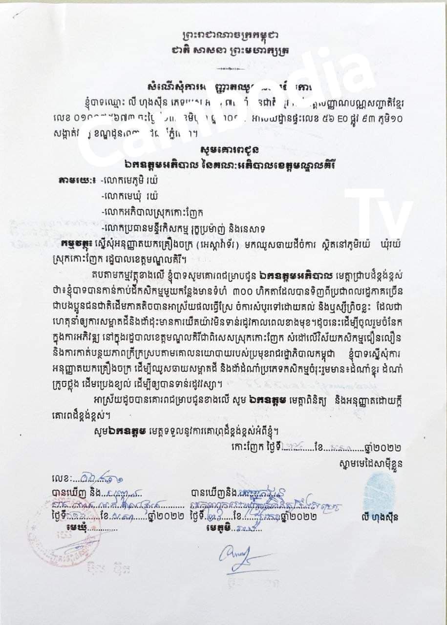 ដី៣០០ហិកតា នៅស្រុកកោះញែក រដ្ឋបាលខេត្តមណ្ឌលគិរីសម្រេចអនុញ្ញាតអោយឈូសឆាយសំអាតព្រៃ តាមរយៈលិខិតមួយច្បាប់ខាងក្រោម សូមសាធារណៈជន ជ្រាបជាពត៌មាន!!