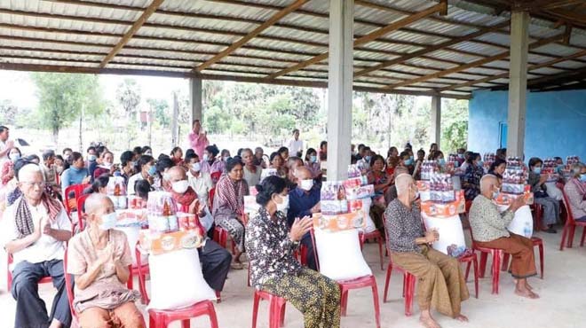 ក្នុងឱកាសនេះឧត្តមសេនីយ៍ទោ សោម ស៊ុន ក៏បាននាំយកនូវអំណោយរបស់ឯកឧត្តមបណ្ឌិត ហ៊ុន ម៉ាណែត និងលោកជំទាវ ឧបត្ថម្ភដល់ប្រជាពលរដ្ឋដែលមានជីវភាពលំបាកខ្វះខាតទាំងពីរភូមិ គឺភូមិស្រោមដែក ចំនួន១០គ្រួសារ និងភូមិបន្ទាយស្ទោងចំនួន ១០គ្រួសារ ដោយក្នុងមួយគ្រួសារៗទទួលបាននូវអង្ករ ២៥គីឡូក្រាម មី១កេស ទឹកត្រី១យួរ និងត្រីខកំប៉ុង១យួរផងដែរ។