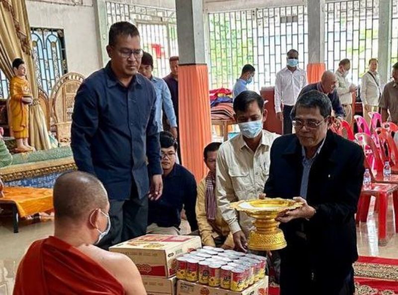 ៧. ប្រគេនបច្ច័យវត្តចំណោម១លានរៀល ទឹកត្រី ៣យួរ ទឹកស៊ីអ៊ីវ ៣យួរ ត្រីខ ៣កេស អង្ករ ១០០គីឡូ ។
