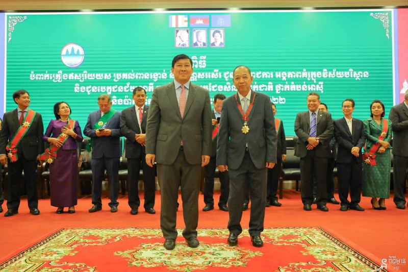 ភ្នំពេញ៖ គ្រឿងឥស្សរិយយស និងប័ណ្ណសរសើរ ត្រូវបានបំពាក់និងប្រគល់ជូនថ្នាក់ដឹកនាំ មន្ត្រីរាជការ និងមន្ត្រីឧទ្យានុរក្ស នៃក្រសួងបរិស្ថាន ដែលមានស្នាដៃក្នុងការបំពេញការងារសម្រាប់ឆ្នាំ២០២១ និង២០២២ ក្រោមអធិបតីភាពឯកឧត្តម សាយ សំអាល់ រដ្ឋមន្ត្រីក្រសួងបរិស្ថាន និងមានការអញ្ជើញចូលរួមពីឯកឧត្តម លោកជំទាវ លោក លោកស្រីជាថ្នាក់ដឹកនាំក្រសួង ព្រមទាំងមន្ត្រីរាជការក្រោមឱវាទ ជាង៥០០នាក់ នៅព្រឹកថ្ងៃទី៣០ ខែតុលា ឆ្នាំ២០២២ នាទីស្តីការក្រសួងបរិស្ថាន។ ក្នុងឱកាសនោះដែរ ឯកឧត្តមរដ្ឋមន្ត្រី សាយ សំអាល់ បានកោតសរសើរនិងវាយតម្លៃខ្ពស់ជូនចំពោះឯកឧត្តម លោកជំទាវ លោក លោកស្រីទាំងអស់ ដែលបានលះបង់កម្លាំងកាយ កម្លាំងចិត្ត ប្រាជ្ញាស្មារតី ដើម្បីបុព្វហេតុបរិស្ថាន ក៏ដូចជាជាតិមាតុភូមិ និងប្រជាជនកម្ពុជា។ ក្នុងនាមរាជរដ្ឋាភិបាល និងឯកឧត្តមផ្ទាល់ បានទទួលស្គាល់នូវការលះបង់របស់បងប្អូនទាំងអស់ ដែលបានចូលរួមយ៉ាងសកម្មក្នុងដំណើររបស់កម្ពុជា ក្នុងការកសាង អភិវឌ្ឍន៍ និងស្តារឡើងវិញនូវសង្គមជាតិថ្មី បន្ទាប់ពីរបបប្រល័យពូជសាសន៍ខ្មែរក្រហម។ ឯកឧត្តមបានគូសបញ្ជាក់បន្ថែមថា កិច្ចការងាររបស់មន្ត្រីរាជការក្រសួងបរិស្ថាន មិនត្រឹមតែការការពារ អភិរក្សធនធានធម្មជាតិប៉ុណ្ណោះទេ ប៉ុន្តែបានចូលរួមកសាងនូវសង្គមជាតិថ្មី ហើយកម្ពុជាត្រូវតែមានឯកភាពជាតិមួយ បើទោះបីជាបុគ្គលម្នាក់ៗមានគំនិតខុសគ្នាក៏ដោយ ប៉ុន្តែសម្រាប់ឧត្តមប្រយោជន៍ជាតិ និងប្រជាជន គឺយើងត្រូវតាំងចិត្តខ្ពស់។ គួរបញ្ជាក់ឱ្យដឹងថា ក្នុងឱកាសជាមួយគ្នានេះ ក៏មានកម្មវិធីប្រគល់រង្វាន់ ប័ណ្ណសរសើរ និងលិខិតសរសើរជូនដល់អង្គភាពជ័យលាភីក្នុងការប្រឡងប្រណាំងអង្គភាពគំរូ និងប្រគល់ពានរង្វាន់និងប័ណ្ណសរសើរជូនដល់បេក្ខជនជ័យលាភីក្នុងកម្មវិធីប្រកួតប្រជែងសិល្បៈថ្នាក់ជាតិ ថ្នាក់តំបន់អាស៊ីនិងប៉ាស៊ីហ្វិក ស្តីពីអូហ្សូនចំពោះបរិយាកាស ឆ្នាំ២០២២ ផងដែរ។ គួររម្លឹកឱ្យដឹងថា គ្រឿងឥស្សរិយយសឆ្នាំ២០២១និងឆ្នាំ២០២២ មានចំនួនសរុប ៥៩៦រូប និងប័ណ្ណសរសើរ សរុប ១០១៨រូប សម្រាប់បំពាក់ និងផ្តល់ជូនថ្នាក់ដឹកនាំ មន្ត្រីរាជការ មន្ត្រីឧទ្យានុរក្ស មន្ត្រីជាប់កិច្ចសន្យា និងមន្ត្រីស្ម័គ្រចិត្ត រួមបញ្ចូលបុគ្គលិកផ្នែកសន្តិសុខ អនាម័យ អគ្គិសនី និងថែសួន ដែលបានខិតខំបំពេញការងារ និងមានស្នាដៃល្អប្រសើរ ក្នុងនោះរួមមាន៖ មេដាយព្រះរាជាណាចក្រកម្ពុជាថ្នាក់មហាសេរីវឌ្ឍន៍ ចំនួន២០រូប, មេដាយសុវត្ថារាថ្នាក់មហាសេរីវឌ្ឍន៍ ចំនួន១១រូប, មេដាយព្រះរាជាណាចក្រកម្ពុជាថ្នាក់មហាសេនា ចំនួន១៥រូប, មេដាយសុវត្ថារាថ្នាក់មហាសេនា ចំនួន៥រូប, មេដាយព្រះរាជាណាចក្រកម្ពុជាថ្នាក់ធិបឌិន្ទ ចំនួន៦រូប, 