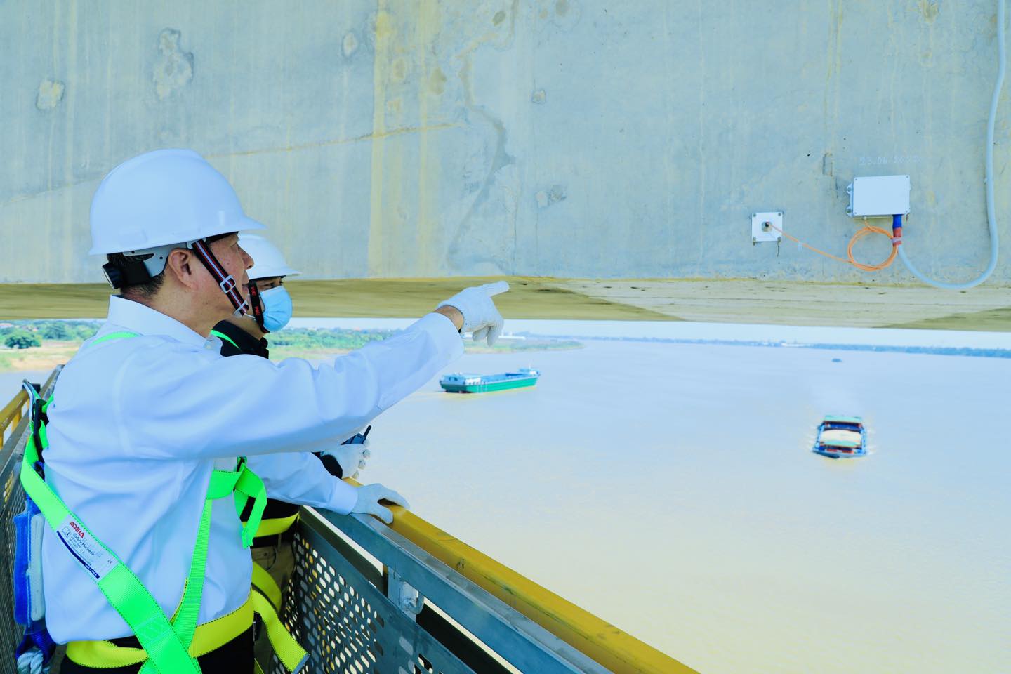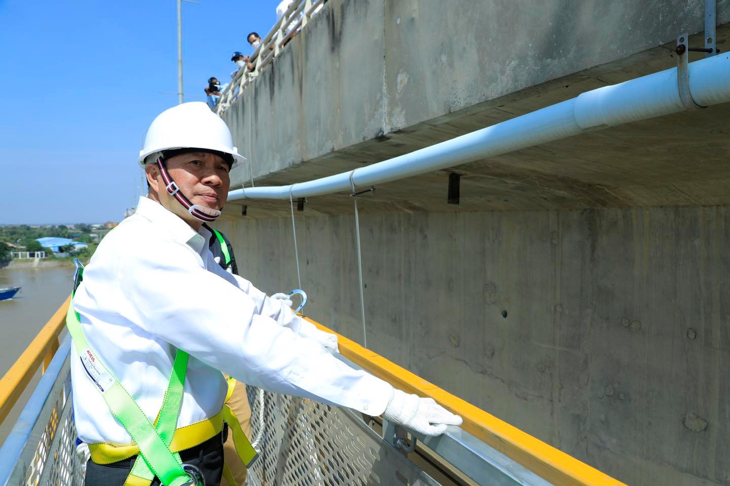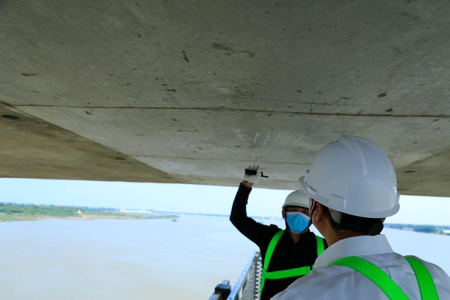 ក្នុងដំណើរបេសកកម្មនេះ ឯកឧត្តមទេសរដ្ឋមន្ត្រី បានអញ្ជើញចុះទៅពិនិត្យដោយផ្ទាល់នូវសំណង់បាត ស្ពានផ្នែកខាងក្រោមនៃស្ពានព្រែកតាមាក់ តាមរយៈរថយន្តបំពាក់ឧបករណ៍អង្កេតពិនិត្យស្ពានមួយនេះ ដើម្បីពិនិត្យឱ្យដឹងថាស្ពានមានស្នាមប្រេះស្រាំ និងបញ្ហាខូច ឬយ៉ាងណា។