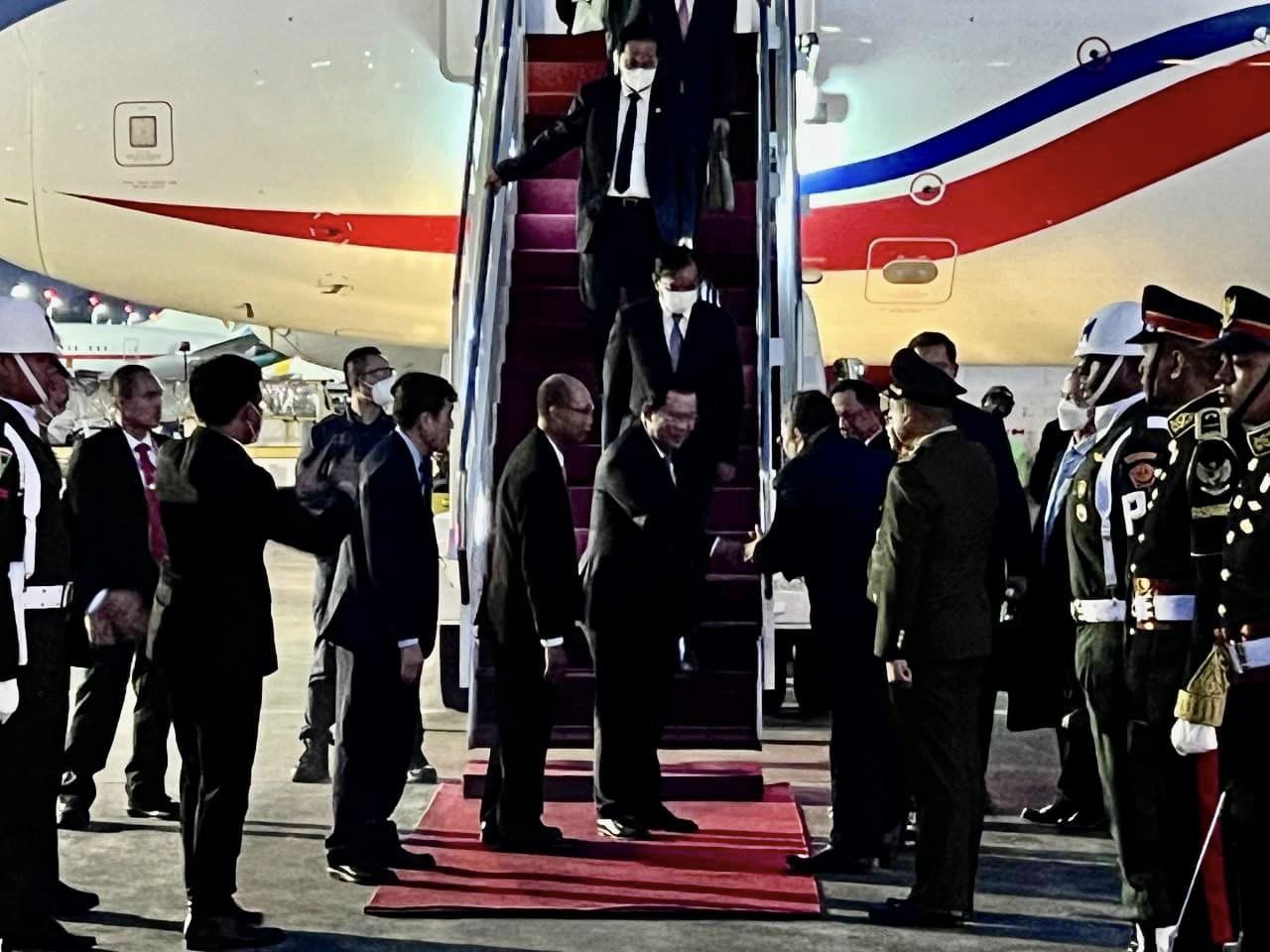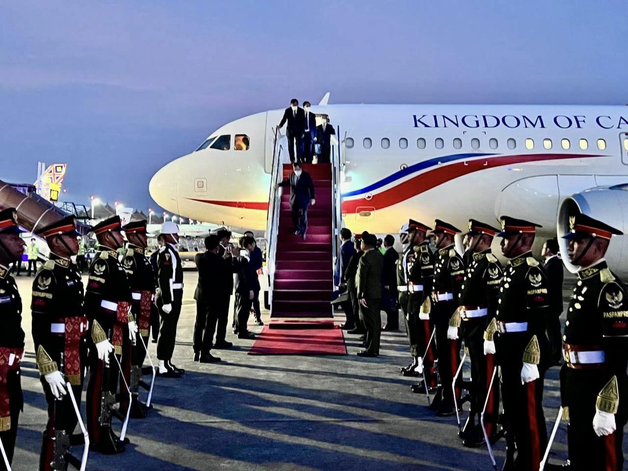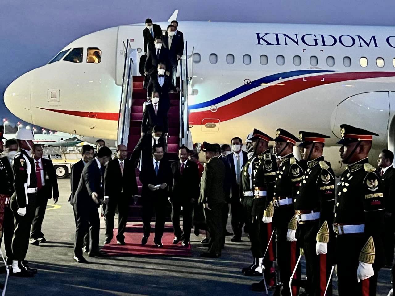 ដំណើរអញ្ជើញដល់របស់សម្តេចតេជោនាយករដ្ឋមន្ត្រី និងគណៈប្រតិភូ ត្រូវបានទទួលការធ្វើគារវកិច្ចស្វាគមន៍យ៉ាងកក់ក្តៅជាទីបំផុតពីមន្ត្រីថ្នាក់ដឹកនាំនៃប្រទេសឥណ្ឌូនេស៊ី ឯកអគ្គរាជទូតកម្ពុជាប្រចាំនៅប្រទេសឥណ្ឌូនេស៊ី និងមន្ត្រីសំខាន់ៗជាច្រើនទៀត។