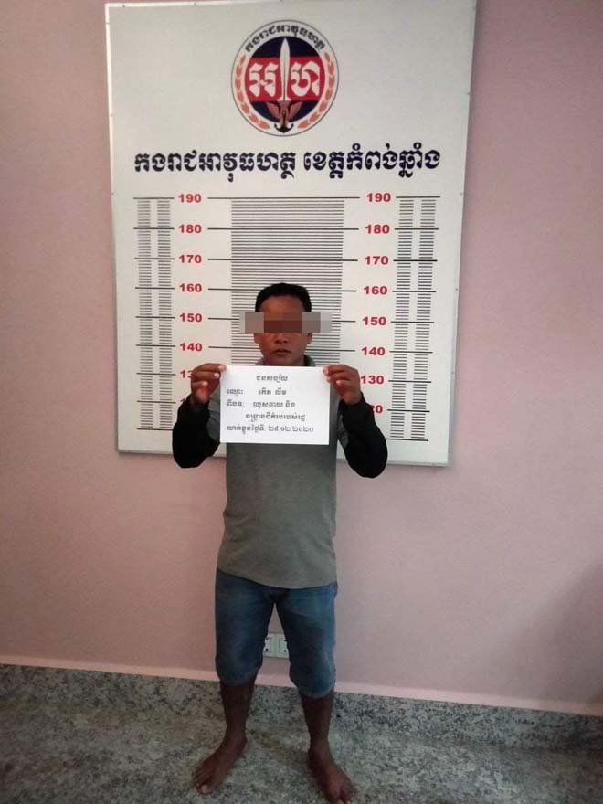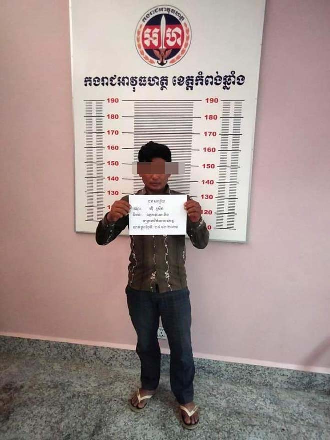 សមត្ថកិច្ចបានឲ្យដឹងថាការឃាត់ខ្លួនបុរសខាងលើនេះខណៈកំពុងធ្វើសកម្មភាពឈូសឆាយដីគម្របព្រៃឈើរបស់រដ្ឋ នៅចំណុចស្រែតាមៀវ ស្ថិតក្នុងភូមិថ្មី ឃុំ ចោងម៉ោង ស្រុកទឹកផុស ខេត្តកំពង់ឆ្នាំង។