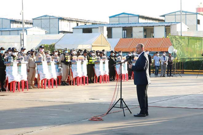 ថ្លែងទៅកាន់បងប្អូនកងកម្លាំង ឯកឧត្តម ហ៊ុន ម៉ានី បានកោតសរសើរ និងថ្លែងអំណរគុណបងប្អូនកងកម្លាំងដែលបានបំពេញតួនាទីការពារ រក្សាសណ្តាប់ធ្នាប់ជូនប្រជាពលរដ្ឋ ភ្ញៀវទេសចរណ៍ជាតិ និងអន្តរជាតិក្នុងភូមិសាស្រ្តនៃរាជធានីភ្នំពេញ។