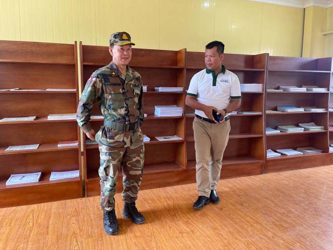 នៅព្រឹកថ្ងៃទី០៥ ខែមករា ឆ្នាំ២០២៣ ឯកឧត្តម ពៅ សុខ ទីប្រឹក្សាផ្ទាល់សម្តេចតេជោ ហ៊ុន សែន , លោក មែ ស៊ីថុន ប្រធានសមាគមអតីតសិស្ស-និស្សិតនៅកម្ពុជា និងឯកឧត្តម ព្រុំ ហៀង ព្រមទាំងក្រុមការងារបាននាំយកនូវសៀវភៅ ៖ ទី១ សម្តេច ហ៊ុនសែន_៣យន្ហការឈ្នះកូវីដ១៩ ទី២ ទឹកចិត្តអ្នកជួយសង្គ្រោះ ទី៣ អ្នកយុទ្ធសាស្ត្រវ័យក្មេងនៅអាស៊ី និងទី៤ កូនប្រុសច្បងដ៏មានឥទ្ធិពល សរុបចំនួន ១០០ ច្បាប់ ប្រគល់ជូនបញ្ជាការដ្ឋានកងពលតូចអន្តរាគមន៍លេខ ១ ដើម្បីតម្កល់ទុកនៅបណ្ណាល័យរបស់អង្គភាព ។