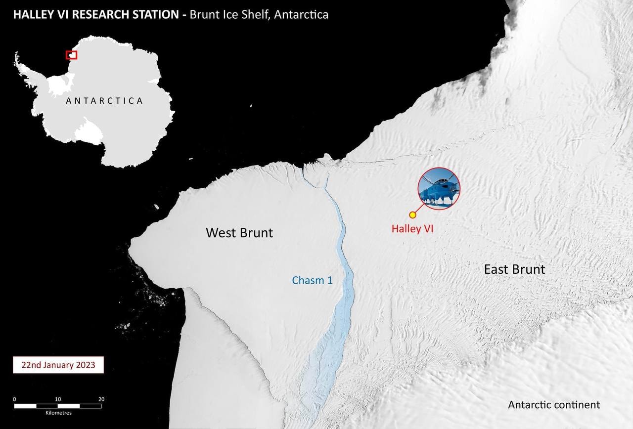 ការរបេះចេញនៃផ្ទាំងទឹកកកដ៏ធំនេះ បានកើតឡើងនៅជិតស្ថានីយ៍ស្រាវជ្រាវរបស់ចក្រភពអង់គ្លេសប្រចាំទ្វីបអង់តាកទិកឈ្មោះថា Halley។