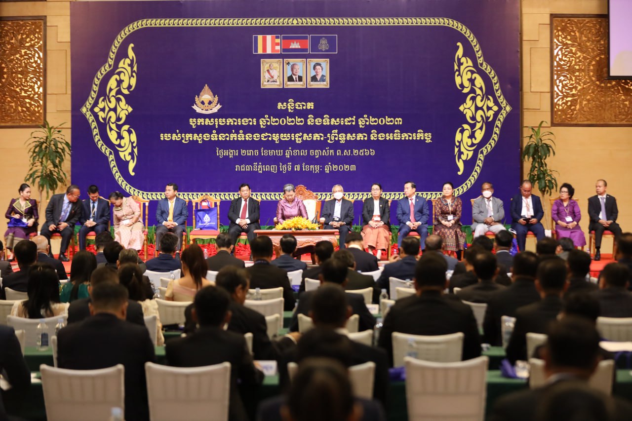 ភ្នំពេញ៖ លោកជំទាវកិត្តិសង្គហបណ្ឌិត ម៉ែន សំអន ឧបនាយករដ្ឋមន្រ្តី រដ្ឋមន្រ្តីល្រសួងទំនាក់ទំនងជាមួយរដ្ឋសភា-ព្រឹទ្ធសភា និងអធិការកិច្ច បានអញ្ជើញជាអធិបតីក្នុងពិធីបូកសរុបលទ្ធផលសន្និបាត របស់ក្រសួងទំនាក់ទំនងជាមួយរដ្ឋសភា-ព្រឹទ្ធសភា និងអធិការកិច្ចឆ្នាំ ២០២២ និងលើកទិសដៅអនុវត្តបន្តឆ្នាំ២០២៣ នៅសុខាភ្នំពេញ នារសៀល ថ្ងៃអង្គារ ២រោច ខែមាឃ ឆ្នាំខាល ចត្វាស័ក ព.ស. ២៥៦៦ ត្រូវនឹង ថ្ងៃទី៧ ខែកុម្ភៈ ឆ្នាំ២០២៣ ។