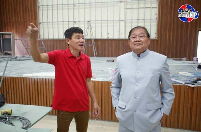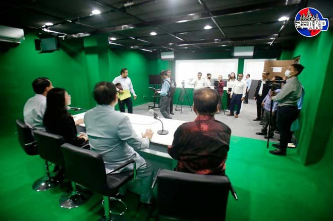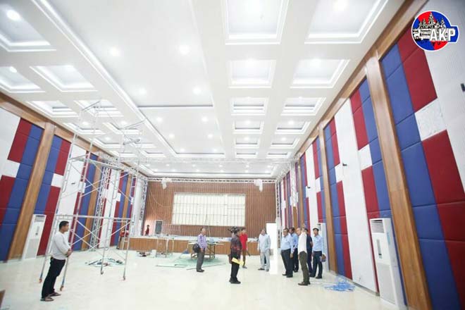 រាជធានីភ្នំពេញ ៖ ឯកឧត្តម ខៀវ កាញារីទ្ធ រដ្ឋមន្ត្រីក្រសួងព័ត៌មាន អញ្ជើញពិនិត្យមើលវឌ្ឍនភាព នៃការសាងសង់អគារសោតទស្សន៍ថ្មី កម្ពស់១៤ជាន់ ដែលមកទល់ពេលនេះសម្រេចបានប្រមាណ ៩៩% ហើយ នៅសល់តែសាលប្រជុំធំមួយប៉ុណ្ណោះ នៅជាន់ទី១២ នាព្រឹកថ្ងៃទី២០ ខែកុម្ភៈ ឆ្នាំ២០២៣។អាកាប៉េ