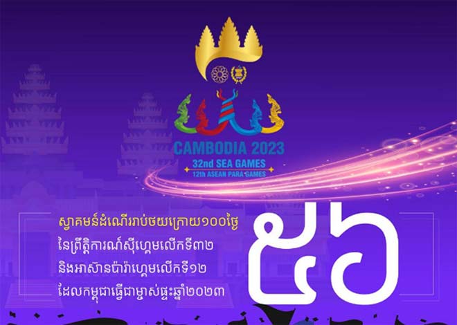 កីឡា ៖ គិតត្រឹមថ្ងៃទី១០ ខែមីនា ឆ្នាំ២០២៣នេះ សល់រយៈពេលតែ ៥៦ថ្ងៃទៀតប៉ុណ្ណោះ នៃដំណើរឆ្ពោះទៅធ្វើម្ចាស់ផ្ទះ នៃការប្រកួតកីឡាស៊ីហ្គេម លើកទី៣២ ដែលត្រូវប្រារព្ធពិធីបើកការប្រកួត នាថ្ងៃទី០៥ ខែឧសភា ឆ្នាំ២០២៣ខាងមុខ។