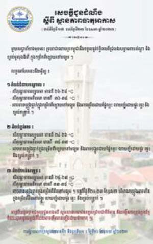 រាជធានីភ្នំពេញ ៖ ក្រសួងធនធានទឹក និងឧតុនិយម បានចេញសេចក្តីជូនដំណឹង ស្ដីពីស្ថានភាពធាតុអាកាស ចាប់ពីថ្ងៃទី១៧ ដល់ថ្ងៃទី២៣ ខែឧសភា ឆ្នាំ២០២៣។