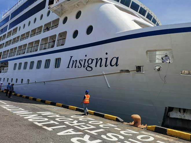 តាមការឱ្យដឹងពីមន្ត្រីនគរបាលអន្តោប្រវេសន៍ ច្រកទ្វារកំពង់ផែស្វយ័តក្រុងព្រះសីហនុ បានឱ្យដឹងថា នាវាទេសចរណ៍បរទេសមួយគ្រឿងមានឈ្មោះ INSIGNIA សញ្ជាតិ ISLAND មានបណ្ដោយ ១៨០,៤៥ម៉ែត្រ ទទឹង ២៥,៤៦ម៉ែត្រ មានជម្រៅទឹក ៦ម៉ែត្រ ផ្ទុកភ្ញៀវទេសចរបរទេសចម្រុះជាតិសាសន៍ចំនួន ៥៩៨នាក់ (ស្រី ៣០៩នាក់) មាន ២៣ សញ្ជាតិ និងមាននាវិកសរុបចំនួន ៤០០នាក់ (ស្រី ៦៦នាក់) មាន ៣៩សញ្ជាតិ នាវានេះបានធ្វើដំណើរមកពី ប្រទេសថៃ ចូលចតនៅកំពង់ផែស្វយ័តក្រុងព្រះសីហនុ កាលពីរសៀលថ្ងៃទី០៣ ខែមិថុនា ឆ្នាំ២០២៣។