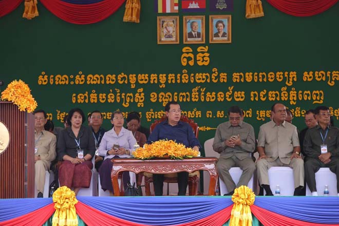 សម្តេចតេជោ ហ៊ុន សែន បានថ្លែងដូចនេះ នាឱកាសចុះជួបសំណេះសំណាលជាមួយកម្មករ កម្មការិនី សរុបជិត២ម៉ឺននាក់ មកពីរោងចក្រ សហគ្រាសចំនួន១១ ដែលកំពុងដំណើរការអាជីវកម្មក្នុងរាជធានីភ្នំពេញ។