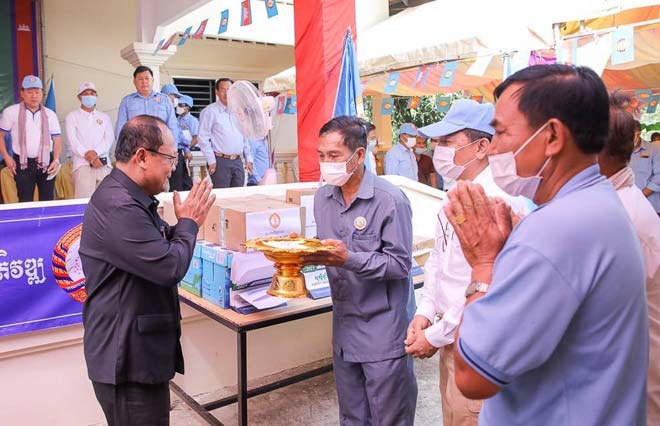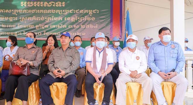 ខេត្តព្រៃវែង ៖ នាព្រឹកថ្ងៃសៅរទី៣០ ខែមករា ឆ្នាំ២០២១ នៅសាលាឃុំពាមមន្ទារ ឯកឧត្តម សន្តិបណ្ឌិត ខៀវ សុភ័គ សមាជិកគណៈកម្មាធិការកណ្តាលគណបក្សប្រជាជនកម្ពុជា និងជាអនុប្រធានទី១ ក្រុមការងារចុះមូលដ្ឋានស្រុកកំពង់ត្របែក ខេត្តព្រៃវែង បានអញ្ជើញជាអធិបតីភាពដ៏ខ្ពង់ខ្ពស់ក្នុង ពិធីប្រកាសក្រុមការងារគណបក្សប្រជាជនកម្ពុជា ឃុំពាមមន្ទារ ស្រុកកំពង់ត្របែក ខេត្តព្រៃវែង ព្រមទាំងចែកអំណោយដល់ប្រជាពលរដ្ឋក្រីក្រជួបការលំបាកចំនួន២៤០គ្រួសារ ដែលជាអំណោយដ៏ថ្លៃថ្លារបស់សម្តេចក្រឡាហោម ស ខេង ឧបនាយករដ្ឋមន្ត្រី រដ្ឋមន្ត្រីក្រសួងមហាផ្ទៃ និងលោកជំទាវ ដោយមានការចូលរួមពី ឯកឧត្តម លោកជំទាវ ក្រុមការងារថ្នាក់កណ្តាលចុះមូលដ្ឋានឃុំ ក្រុមការងា រថ្នាក់ស្រុកចុះមូលដ្ឋានឃុំ មន្ត្រីឃុំ-ភូមិ សមាជិក សមាជិកា និងប្រជាពលរដ្ឋ សរុបប្រមាណ៤៩៥នាក់។
