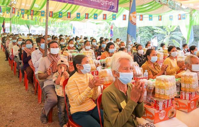 ក្នុងឱកាសនោះដែរ ឯកឧត្តម សន្តិបណ្ឌិត ខៀវ សុភ័គ សមាជិកគណៈកម្មាធិការកណ្តាលគណបក្សប្រជាជនកម្ពុជា និងជាអនុប្រធានទី១ ក្រុមការងារចុះមូលដ្ឋាន ស្រុកកំពង់ត្របែក ខេត្តព្រៃវែង បានធ្វើការសំណេះសំណាលជាមួយប្រជាពលរដ្ឋ ឃុំពាមមន្ទារ ស្រុកកំពង់ត្របែក ខេត្តព្រៃវែង ព្រមទាំងនាំយកអំណោយចែកជូនប្រជាពលរដ្ឋក្រីក្រជួបការលំបាកចំនួន២៤០គ្រួសារ ដោយក្នុង១គ្រួសារទទួលបានអង្ករចំនួន១បេ មី១កេស ទឹកត្រី១យួរ ទឹកស៊ីអ៊ីវ១យួរ ត្រីខ១យួរ ប៊ីចេងកន្លះគីឡូ ថវិការក្នុង១គ្រួសារទទួលបាន ៤០,០០០រៀលផងដែរ។ ដោយជាមួយគ្នានោះ ឯកឧត្តម សន្តិបណ្ឌិត បានធ្វើការសាកសួរសុខទុក្ខ ព្រមទាំងបានរំលឹកនូវប្រវត្តិសាស្ត្រ ដែលរូបឯកឧត្តមផ្ទាល់បានឆ្លងកាត់កន្លងមក រហូតមកដល់បច្ចុប្បន្នក្រោមការខិតខំប្រឹងប្រែងរបស់គណបក្សប្រជាជនកម្ពុជាទើបប្រទេសរបស់យើងទទួលបានសុខសន្តិភាព ស្ថិរភាព រួមជាមួយការអភិវឌ្ឍន៍។