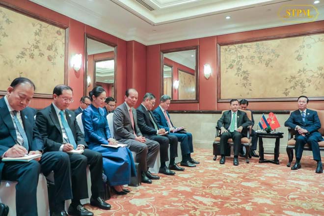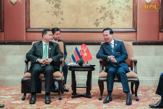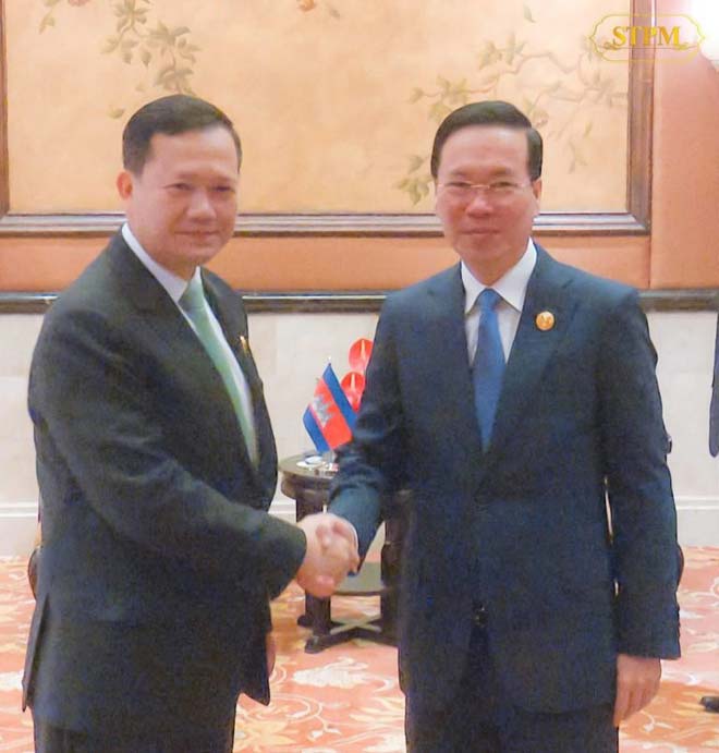 នាព្រឹកថ្ងៃទី១៨ ខែតុលា ឆ្នាំ២០២៣, សម្តេចមហាបវរធិបតី ហ៊ុន ម៉ាណែត នាយករដ្ឋមន្រ្តី នៃព្រះរាជាណាចក្រកម្ពុជា បានជួបពិភាក្សាការងារជាមួយ ឯកឧត្តម វ៉ វ៉ាន់ធឿង (Vo Van Thuong) ប្រធានាធិបតី នៃសាធារណរដ្ឋសង្គមនិយមវៀតណាម ក្នុងឱកាសនៃការចូលរួមក្នុង “វេទិកាខ្សែក្រវាត់ និងផ្លូវ លើកទី៣” នៅរដ្ឋធានីប៉េកាំង។