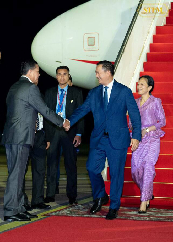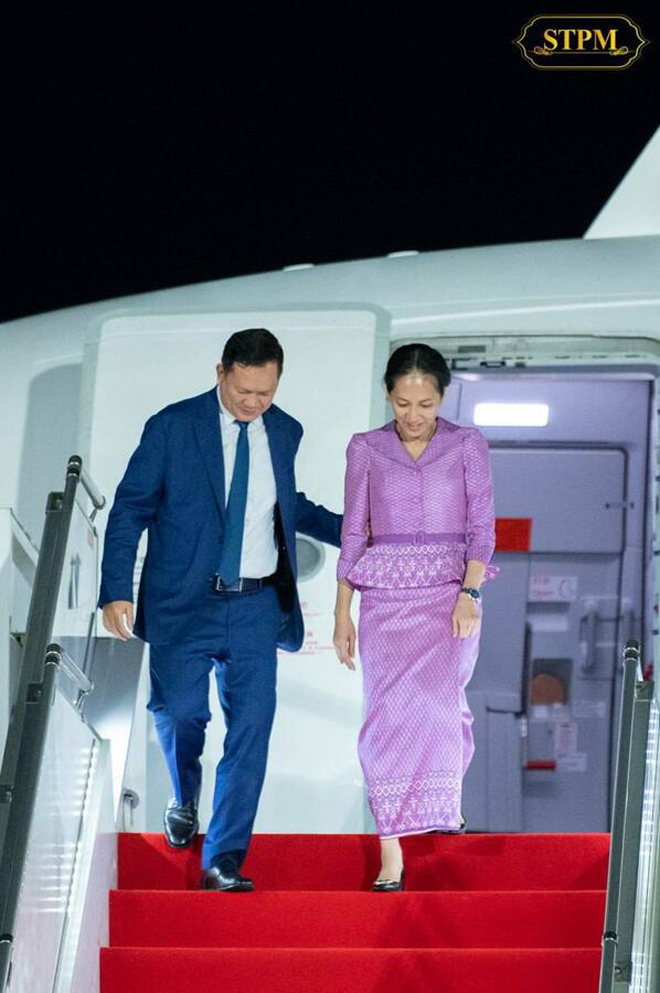 រាជធានីភ្នំពេញ ៖ នាព្រឹកព្រលឹមថ្ងៃទី២១ ខែតុលា ឆ្នាំ២០២៣នេះ សម្តេចមហាបវរធិបតី ហ៊ុន ម៉ាណែត នាយករដ្ឋមន្រ្តី នៃព្រះរាជាណាចក្រកម្ពុជា និងលោកជំទាវបណ្ឌិត ពេជ ចន្ទមុន្នី បានដឹកនាំគណៈប្រតិភូកម្ពុជា អញ្ជើញមកដល់អាកាសយានដ្ឋានអន្តរជាតិភ្នំពេញ ប្រកបដោយសុវត្ថិភាព និងជោគជ័យ ក្រោយពីបានអញ្ជើញចូលរួម «វេទិកាខ្សែក្រវាត់ និងផ្លូវ លើកទី៣ សម្រាប់កិច្ចសហប្រតិបត្តិការអន្តរជាតិ» នៅប្រទេសចិន និងអញ្ជើញចូលរួម «កិច្ចប្រជុំកំពូលអាស៊ាន-ក្រុមប្រឹក្សាសហប្រតិបត្តិការឈូងសមុទ្រ» នៅប្រទេសអារ៉ាប៊ី សាអូឌីត ដោយទទួលបានលទ្ធផលផ្លែផ្កាគួរជាទីមោទនៈ។ប្រភពអាកាប៉េ