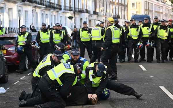 ការប៉ះទង្គិចគ្នានេះ បានផ្ទុះឡើង នៅទីក្រុងឡុងដ៍ ខណដែលការប្រមូលផ្តុំដ៏ធំបំផុតមួយក្នុងការគាំទ្រប្រជាជនប៉ាឡេស្ទីន ស្របពេលជាមួយនឹងថ្ងៃឈប់បាញ់ដើម្បីគោរពដល់ការលះបង់របស់អតីតយុទ្ធជនអង់គ្លេស។