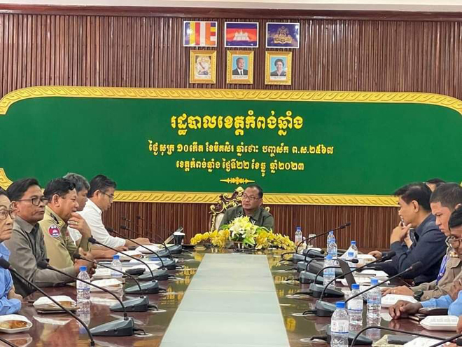 ខេត្តកំពង់ឆ្នាំង ៖ នៅព្រឹកថ្ងៃទី ២២ ខែធ្នូ ឆ្នាំ២០២៣ ឯកឧត្ដម ស៊ុន សុវណ្ណារិទ្ធិ អភិបាលខេត្ត អភិបាលរងខេត្ត ឯកឧត្ដមព្រះរាជអាជ្ញាអមសាលាតំបូងខេត្ត បានដឹកនាំក្រុមការងាររដ្ឋបាលខេត្តទទួលជួបតំណាងប្រជាពលរដ្ឋចំនួន ៨៤ នាក់មកពីឃុំច្រណូក ឃុំដារ ឃុំកំពង់ហៅ ឃុំផ្លូវទូក ឃុំពោធិ៍ ឃុំប្រឡាយមាស ឃុំសំរោងសែន និងឃុំស្វាយរំពារ ស្រុកកំពង់លែង ដែលបានគោរពស្នើសុំកិច្ចអន្តរាគមន៍តាមរយៈឯកឧត្ដមអភិបាលខេត្ត គោរពជូនប្រមុខរាជរដ្ឋាភិបាល កាត់ឆ្វៀលដី និងសុំបន្តបង្កើនផលឡើងវិញ ក្នុងតំបន់៣ ។ បន្ទាប់ពីបានស្តាប់អនុសាសន៍ណែនាំរបស់ឯកឧត្ដមអភិបាលខេត្ត និងក្រុមការងារ បងប្អូនប្រជាពលរដ្ឋបានយល់ស្របនិងត្រឡប់ទៅមូលដ្ឋានវិញ រង់ចាំការសម្រេចរបស់ប្រមុខរាជរដ្ឋាភិបាល ។