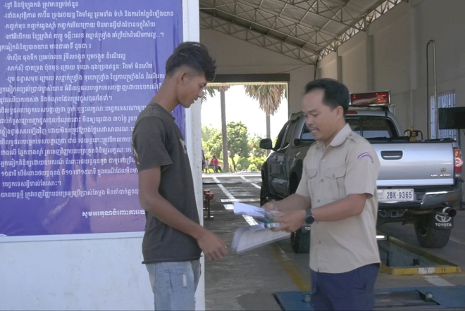 ខេត្តកំពង់ធំ ៖ ក្រសួងសាធារណការ និងដឹកជញ្ជូន សហការជាមួយក្រុមហ៊ុន CMVIC បានរៀបចំដំណើរការម៉ាស៊ីនត្រួតពិនិត្យលក្ខណៈបច្ចេកទេសយានយន្ត នៅក្នុងខេត្តកំពង់ធំ ដើម្បីត្រួតពិនិត្យបច្ចេកទេសរថយន្ត(ឆៀក) ។