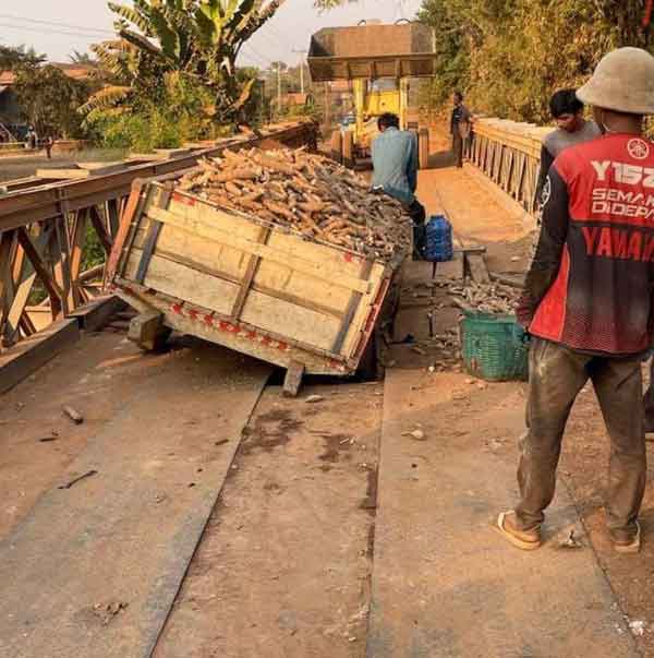 ខេត្តស្ទឹងត្រែង ៖ ប្រជាពលរដ្ឋបានឲ្យដឹងថា សព្វថ្ងៃនេះមានរថយន្តធុនធំតែងតែដឹកលើសទម្ងន់ ដឹកឆ្លងកាត់ស្ពានចំនួន ២កន្លែងក្នុងឃុំអូរៃទាំងយប់ទាំងថ្ងៃ បង្កឲ្យស្ពានដែកបាឡេនៅចំកណ្ដាលស្ពានបាក់ស្រុត ប្រជាពលរដ្ឋខំធ្វើការជួសជុលបណ្ដុះអាសន្នតែមិនអាចទ្រទ្រង់ទម្ងន់រថយន្តដែលផ្ទុកលើសនោះបានឡើយ។ស្ពាន២កន្លែងនៅក្នុងភូមិអន្លង់ស្វាយ ឃុំអូរ៉ៃ ស្រុកថាលាបរិវ៉ាត់ ខេត្តស្ទឹងត្រែងដែលមានចម្ងាយផ្លូវពីទីរួមខេត្តប្រមាណជាង ២០ គីឡូម៉ែត្រស្របតាមដងទន្លេមេគង្គ បានបាក់ស្រុតប្រជាពលរដ្ឋស្នើឲ្យអាជ្ញាធរពាក់ព័ន្ធជួយធ្វើការទប់ស្កាត់នឹងធ្វើការជួសជុលស្ពានឡើងវិញដើម្បីសម្រួលដល់ប្រជាពលរដ្ឋដឹកកសិផលទៅកាន់ទីផ្សារ។
