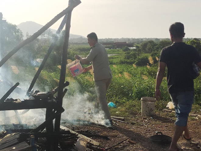 ដូចនេះពួកគាត់ សូមអំពាវនាវ សប្បុរសជន ឯកឧត្តម លោកជំទាវ ថ្នាក់ដឹកនាំ ទាំងអស់ សូមមេត្តាជួយគាត់ផង គ្រួសារគាត់ត្រូវបានភ្លើងឆេះផ្ទះអស់ទាំងស្រុង គ្មានសល់អ្វីក្រៅពីសំលៀកបំពាក់មួយចង្កេះជាប់ខ្លួននេះទេ ៕