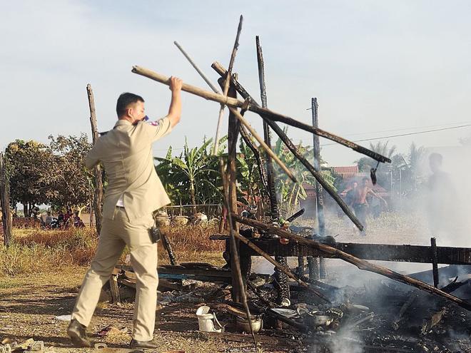 ខេត្តកំពង់ឆ្នាំង ៖ ផ្ទះធ្វើអំពីសរសរឈើប្រក់ស្លឹកទំហំ៣x៤ មួយខ្នង ត្រូវភ្លើង ភ្លើងឆេះផ្ទះខ្ទេចគ្មានសល់ ខណៈគ្រួសារនេះកំពុងមានជីវភាពខ្វះខាត រកទីពំនាក់គ្មាន។