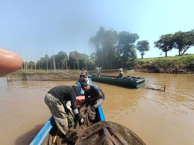 ខេត្តកំពង់ឆ្នាំង ៖ លោកលី ឡា នាយខណ្ឌរដ្ឋបាលជលផលកំពង់ឆ្នាំងឲ្យដឹងថា៖ សម្រាស់រួមផ្សំកំប្លោកចំនួន០២ករណី ៤៧កន្លែង ស្មើនិង២៣៥០ម៉ែត្រការ៉េ មែកសម្រាស់ចំនួន១៤១០មែក បង្គោលចំនួន៧០៥ដើម ខ្សែចងប្រវែង២០គីឡូក្រាម រួមជាមួយរបាំងស្បៃមុង០១ករណី ស្មើនឹង១១កន្លែង ប្រវែង២៥០ម៉ែត្រ លូស្បៃមុងចំនួន១១គ្រឿង បង្គោលចំនួន២០០ដើម ត្រូវបានសមត្ថកិច្ចចំរុះខេត្តកំពង់ឆ្នាំង ធ្វើការបង្ក្រាបរើកម្ទេចចោល នៅនឹងកន្លែង ក្នុងនោះចាក់លែងត្រីចំរុះចំនួន៥០គីឡូក្រាមក្នុងដែននេសាទវិញផងដែរ។