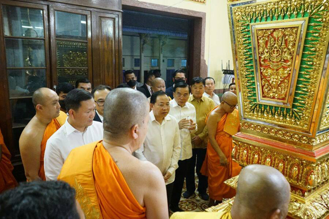 ព្រមជាមួយគ្នានេះផងដែរ សម្តេចធិបតី ក៏បានអញ្ជើញទៅមើលការរៀបចំព្រះរាជពិធីបុណ្យព្រះសពដោយផ្ទាល់ ហើយបានអញ្ជើញមើលមជ្ឈូសា និងទីតាំងតម្កល់ព្រះរាជសព ជាពិសេសចាត់ចែងក្នុងការរៀបចំពិធីបុណ្យព្រះរាជសពឱ្យបានត្រឹមត្រូវស្របតាមគន្លងព្រះពុទ្ធសាសនា និងបានរៀបចំបង្កើតគណៈកម្មការទទួលបន្ទុកក្នុងការដឹកនាំ និងរៀបចំព្រះរាជពិធីបុណ្យព្រះសពសម្តេចព្រះសង្ឃរាជាធិបតី។