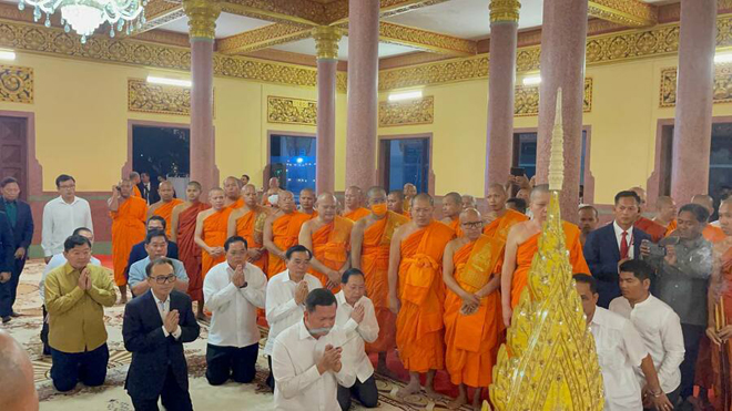 រាជធានីភ្នំពេញ ៖ សម្តេចធិបតីនាយករដ្ឋមន្ត្រី បានអញ្ជើញទៅគោរពព្រះវិញាណក្ខន្ធសម្តេចព្រះអគ្គមហាសង្ឃរាជាធិបតី កិត្តិឧទេ្ទសបណ្ឌិត ទេព វង្ស ឧទ្ទិសព្រះរាជមហាកុសលថ្វាយដល់ព្រះវិញាណក្ខន្ធសម្តេច បានស្តេចយាងទៅកាន់ស្ថានបរមសុខ ព្រះនិព្វានកុំបីឃ្លាតឡើយ។