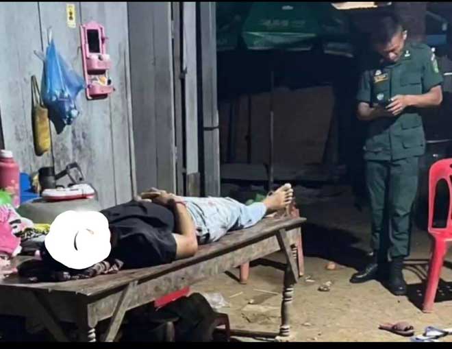 ខេត្តបន្ទាយមានជ័យ ៖ ស្ត្រីជាម្ដាយបានអោបនិងស្រែកទ្រហោយំសោកបោកខ្លួនចំពោះសពកូនប្រុសពៅ ដែលត្រូវបានកូនប្រុសច្បងដែលត្រូវជាបង្កើតម្នាក់ទៀតបានវាយសម្លាប់នឹងចបជីកដងដែក។ឃាតកម្មបានកើតឡើងនៅយប់ថ្ថ្ងៃទី១២ ខែតុលា ឆ្នាំ២០២៤ នៅភូមិតារាងបាល់ សង្កាត់កំពង់ស្វាយ ក្រុងសិរីសោភ័ណ ខេត្តបន្ទាយមានជ័យ។