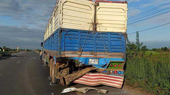 ខេត្តបាត់ដំបង : គ្រោះថ្នាក់ចរាចរណ៍រថយន្តដឹកទំនិញបញ្ញើបុករថយន្តធុនធំមួយគ្រឿងទៀតពីក្រោយយ៉ាងពេញទំហឹងបណ្តាលឲ្យស្លាប់អ្នកបើកបរម្នាក់ និងអ្នករួមដំណើរម្នាក់របួស។