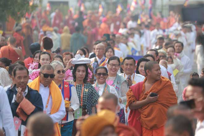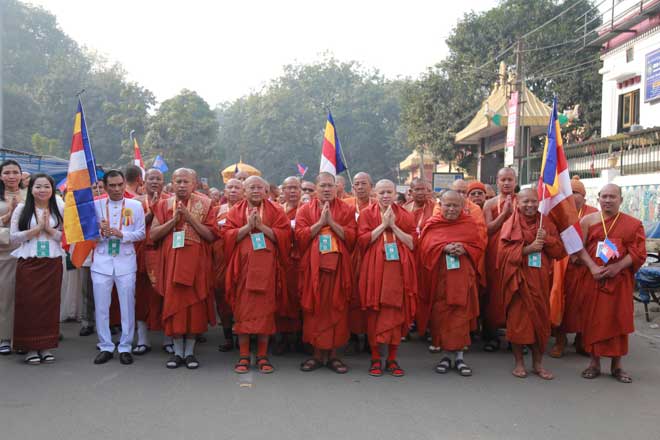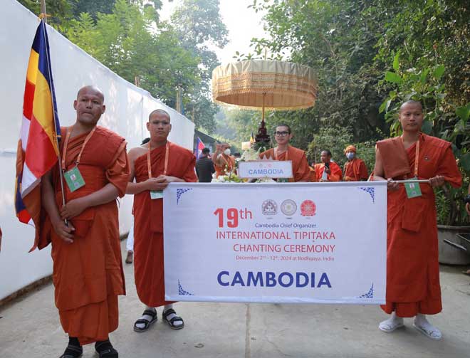 ថ្នាក់ដឹកនាំសង្ឃកម្ពុជា និងពុទ្ធបរិស័ទចម្រុះជាតិសាសន៍ជាង១ម៉ឺននាក់ ចូលរួមដង្ហែក្បួនធម្មយាត្រា បើកកម្មវិធីសូធ្យព្រះត្រៃបិដកអន្តរជាតិលើកទី១៩ ដែលមានរយៈពេល១០ថ្ងៃ នៅស្រុកគយា រដ្ឋប៊ីហារ សាធារណរដ្ឋឥណ្ឌា នាព្រឹកថ្ងៃទី០២ ខែធ្នូ ឆ្នាំ២០២៤ ដោយមានការនិមន្ត និងអញ្ជើញចូលរួមពី សម្តេចព្រះពុទ្ធជ័យមុនីបណ្ឌិត ឃឹម សន ព្រះប្រធានលេខាធិការដ្ឋាន គណៈសង្ឃនាយក និងជាព្រះមេគណរាជធានីភ្នំពេញ សម្តេចព្រះមហាអរិយវង្សបណ្ឌិត យ៉ន សេងយៀត ព្រះសាកលវិទ្យាធិការ នៃពុទ្ធិកសាកលវិទ្យាល័យព្រះសីហនុរាជ សម្តេចព្រះមង្គលមុនីរង្សី ហ៊ូ ឈីវនាថ ព្រះអនុប្រធានអចិន្ត្រៃយ៍លេខាធិការដ្ឋានគណៈសង្ឃនាយក និងជាព្រះនាយកពុទ្ធិកវិទ្យាល័យព្រះសុរាម្រឹត ព្រះមហាសង្សាធិបតី ឥទ្ធិមុនី ម៉ឹង សាង ព្រះប្រធានពុទ្ធិកសមាគម ព្រះសង្ឃខ្មែរ នៅសហរដ្ឋអាមេរិក ឯកឧត្តម នាក់ សំបូរ រដ្ឋលេខាធិការ ក្រសួងធម្មការ និងសាសនា និងមហាឧបាសិកា Dr. Wangmo Dixey ប្រធានមូលនិធិពន្លឺពុទ្ធិធម៌អន្តរជាតិ (LBDFI) ព្រមទាំងតំណាង ITCC។ប្រភពអាកាប៉េ