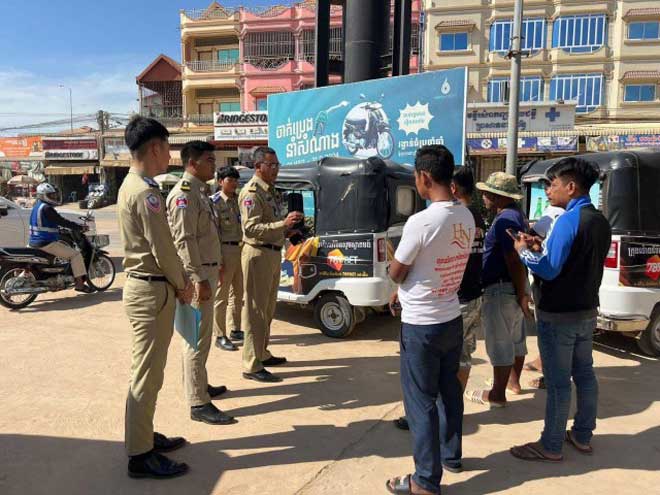 ខេត្តបន្ទាយមានជ័យ ៖ អនុវត្តតាមបទសារាចរណ៍ណែនាំបស់ក្រសួងមហាផ្ទៃ បទបញ្ជរបស់អគ្គស្នងការនគរបាលជាតិ បទបញ្ជារបស់លោកឧត្តមសេនីយ៍ទោ សិទ្ធិ ឡោះ ស្នងការនៃស្នងការដ្ឋាននគរបាលខេត្តបន្ទាយមានជ័យ នៅថ្ងៃទី០៩ ខែធ្នូ ឆ្នាំ២០២៤នេះ លោកវរសេនីយ៍ទោ សោម សារុន នាយការិយាល័យប្រឆាំងបទល្មើសបច្ចេកវិទ្យា បានដឹកនាំកម្លាំងនគរបាល ចុះផ្សព្វផ្សាយពីសារាចរណែនាំលេខ: ០៧២ របស់ក្រសួងមហាផ្ទៃស្តីពីការបញ្ឈប់សកម្មភាពផ្សព្វផ្សាយល្បែងស៊ីសងខុសច្បាប់ គឺធ្វើដល់ប្រជាពលរដ្ឋនៅតាមទីប្រជុំជន ចំណតរថយន្ត ក្នុងភូមិសាស្រ្ត ក្រុងសិរីសោភ័ណ ខេត្តបន្ទាយមានជ័យ ។