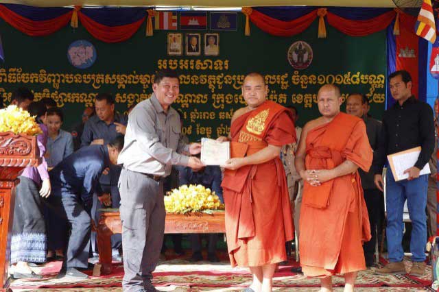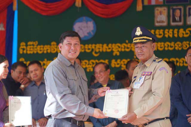ជាកិច្ចស្វាគមន៍ លោក អ៊ុំ រាត្រី អភិបាលខេត្តបន្ទាយមានជ័យ បានឲ្យដឹងថា :ប័ណ្ណកម្មសិទ្ធនេះគឺវាមានសារៈសំខាន់ណាស់សម្រាប់ប្រជាពលរដ្ឋយកទៅប្រើប្រាស់ ដែលមានឈ្មោះជាម្ចាស់កម្មសិទ្ធិ គ្មានការក្លែងបន្លំបានឡើយ។