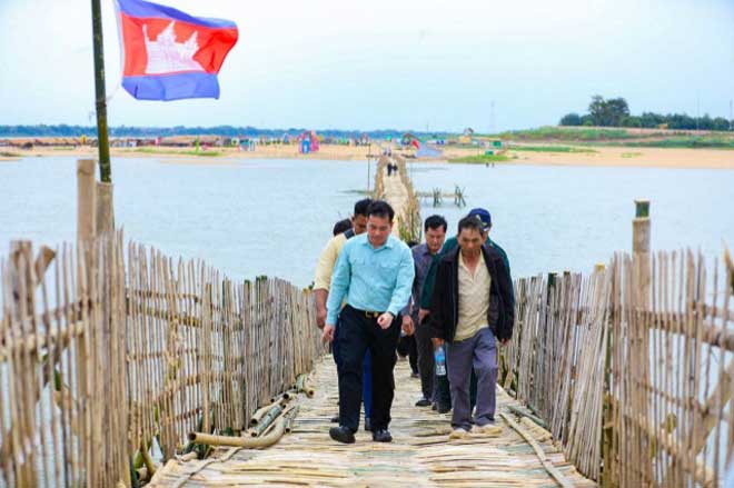 ខេត្តកំពង់ចាម ៖ នៅក្នុងដំណើរចុះពិនិត្យលក្ខណៈបច្ចេកទេស និងពន្លឿនការស្ថាបនាស្ពានប្រដឺសឬស្សី កោះប៉ែន ឆ្លងកាត់ទន្លេមេគង្គ ឆ្ពោះទៅកាន់រមណីយដ្ឋានធម្មជាតិ “ឆ្នេរខ្សាច់កោះប៉ែន” ដែលដឹកនាំលោក អ៊ុន ចាន់ដា អភិបាលខេត្តកំពង់ចាម បានអោយដឹងថា ស្ពាននេះត្រូវដាក់អោយដំណើរការកាលពីថ្មីៗនេះ។
