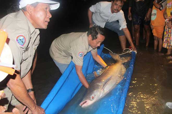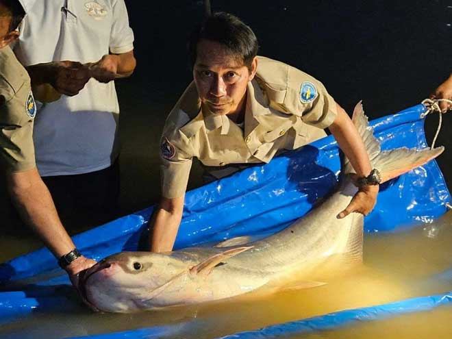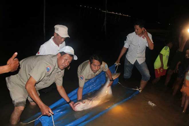 ខេត្តកណ្តាល ៖ នៅថ្ងៃទី៤ ខែមករា ឆ្នាំ២០២៥ ក្រុមការងារវិទ្យាស្ថានស្រាវជ្រាវ និងអភិវឌ្ឍន៍ជលផលទឹកសាបនៃរដ្ឋបាលជលផល សហការជាមួយគម្រោងអច្ឆរិយភាពទន្លេមេគង្គ បានលែងត្រីរាជមួយក្បាល ដែលមានទម្ងន់ 30 គក្រ និងមានប្រវែងដងខ្លួនសរុប 133 ស.ម ចាប់បាននៅភូមិកោះរការ ឃុំព្រែកអញ្ចាញ ស្រុកមុខកំពូល ខេត្តកណ្តាល។ ក្រុមការងារយើងបានពាក់ស្លាកសញ្ញា និងបានលែងចូលទន្លេវិញប្រកបដោយសុវត្ថិភាព៕ប្រភពអាកាប៉េ