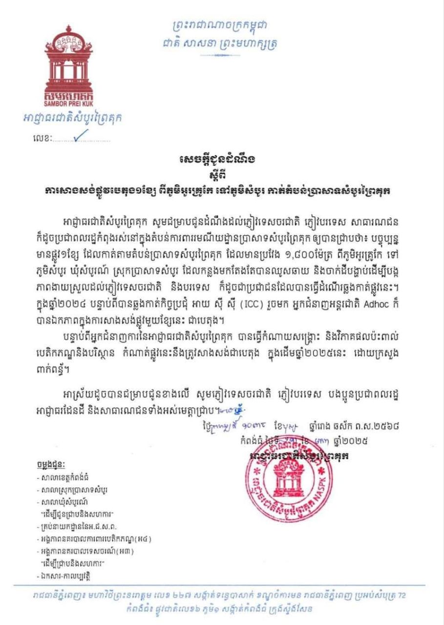 ✍ប្រជាពលរដ្ឋទទួលបានផ្លូវមួយខ្សែ នៅភូមិអូរគ្រូកែឆ្ពោះទៅភូមិសំបូរ ឃុំសំបូរ ស្រុកប្រាសាទសំបូរ ខេត្តកំពង់ធំ។ admin — 25/01/2025 in ព័ត៌មានថ្មីៗ 59 Likes 301 Views Share Tweet on Twitter Share on Facebook Google+ Pinterest
